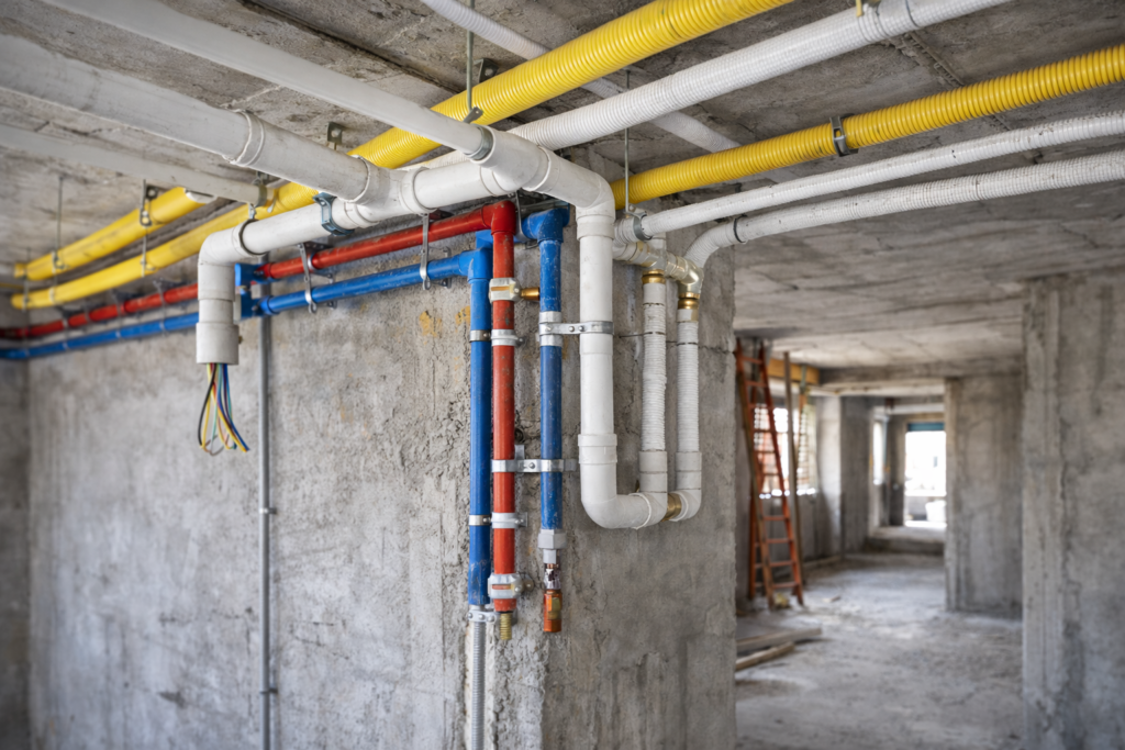 Desarrollamos instalaciones eléctricas, sanitarias, de gas y aire acondicionado, priorizando seguridad, funcionamiento eficiente y prolijidad en obra. Cada instalación es planificada según normativa y necesidades del proyecto.